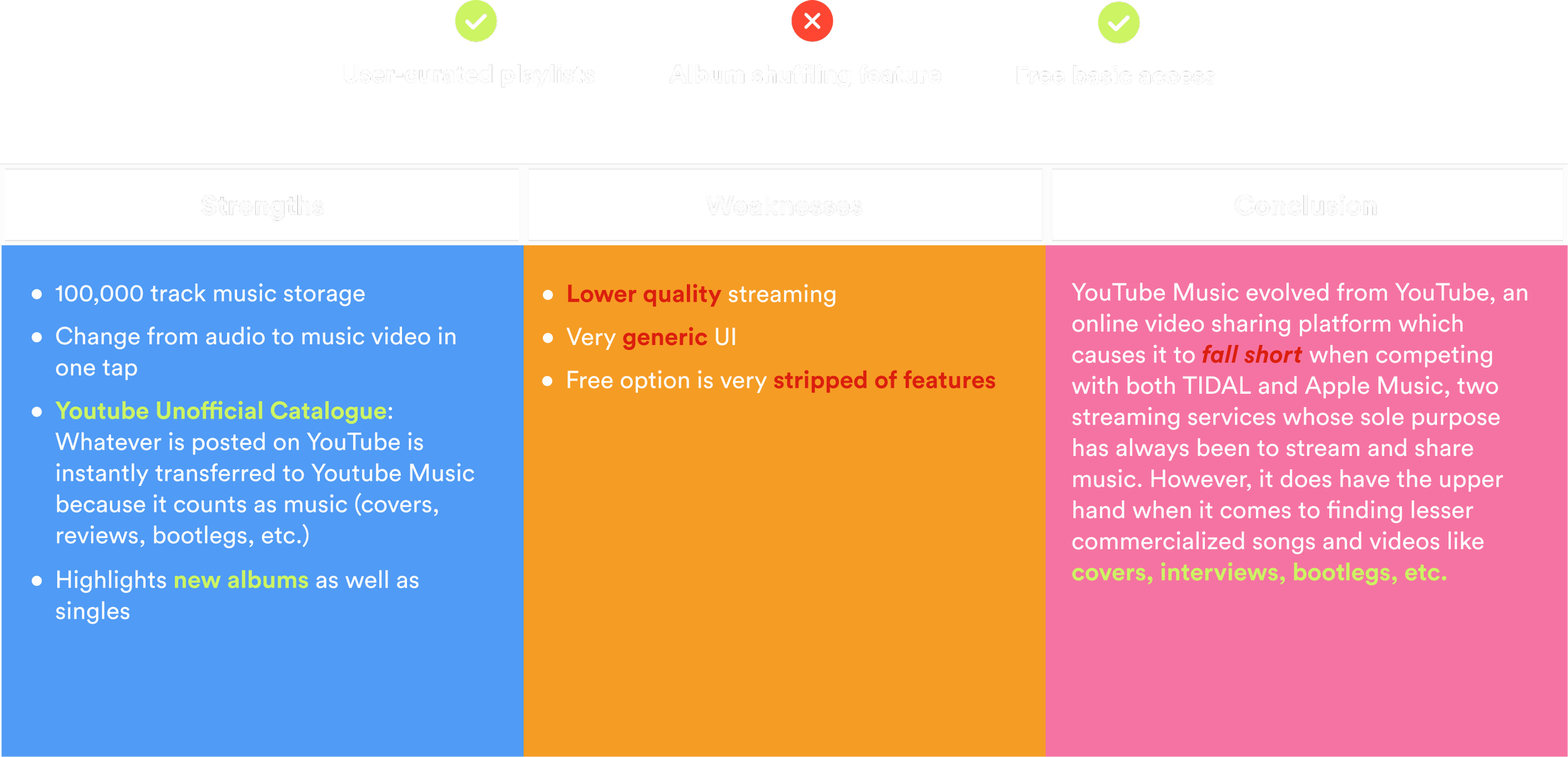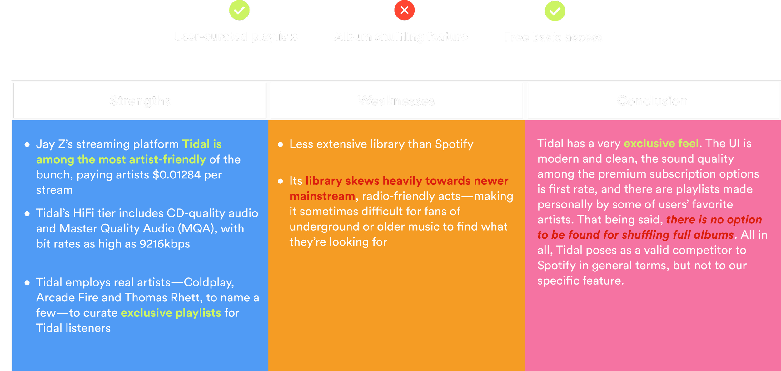 A comparative and competitive analysis was conducted to get an understanding of which music streaming services, if any, offer album shuffling feature(s)