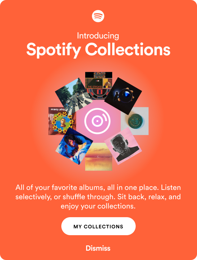 Spotify Collections is a reimagined delivery of the analog experience that comes with owning a record collection (but without all the dust bunnies). Users are free to create collections of all kinds of albums, and shuffle them respectively.
